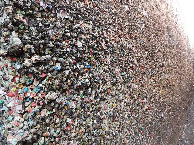 没错,就是一条小路,从上到下沾满了嚼过的口香糖,你也可以把自己嚼过的粘在上面,或者跟小伙伴讨论一下搞这么一条长20米的口香糖路是为了什么。