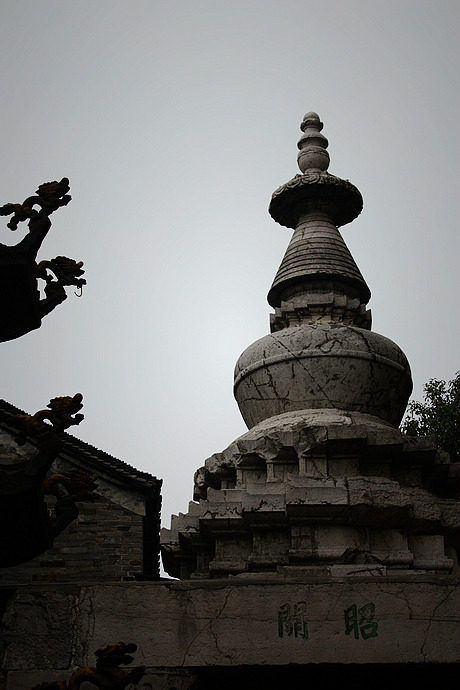 经过重重门坊,有过街石塔,经考证,为元代建筑,这种过街塔建筑,已是全国仅存,现在是全国重点保护文物,门额上有书“昭关”二字。