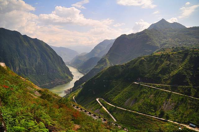 这一段山高、路陡,但景色很不错,尤其这个拐角,可以看见金沙江壮丽的景色,大家一定要靠边停车,小心照相哟。