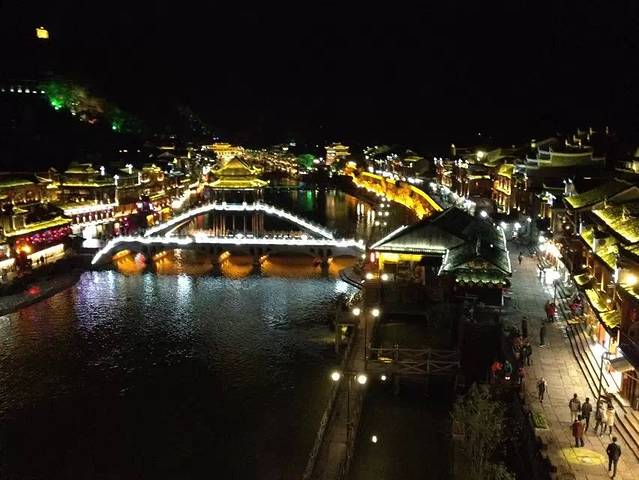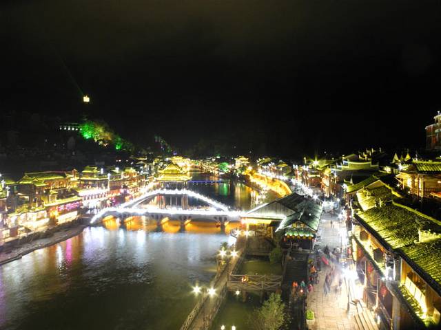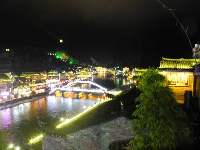 晚上20:20分才到凤凰古城,一下车到处的拉客司机和拉客的酒店,我们就说我们已经订房了,不要给他们一点点的希望,不会缠着你不放的。我们在百度上查了一下坐1路的公交车到南门口(2元/人),让客栈的老板出来接我们进城,就是我们逃票后不能出城如果出城了检票口的人是不会让你进来的,还有如果遇到检票的人就随时准备调头走免得你没有票把你赶出去,检票的人晚上十点下班早上7点上班的,这个时间也是可以逃票的。我们随便找了个餐馆吃了一餐饭(90元),带着相机拍了一下夜景。