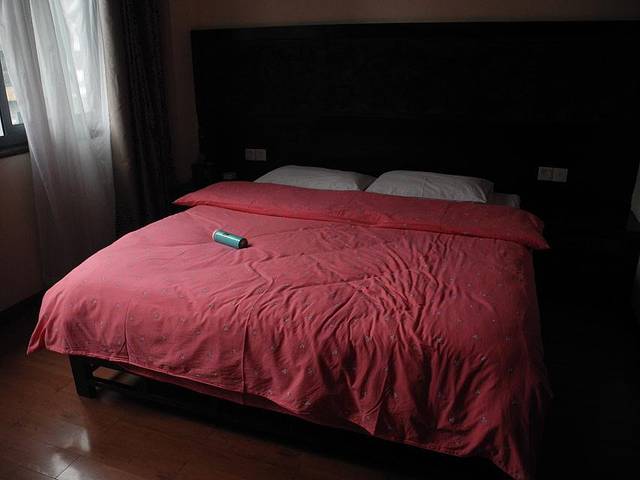 1米8的大床,木地板,没有卫生间,卫生间是公用的,但是他们是四个房就有两个卫生间不会造成挤卫生间的情况,有提供热水。