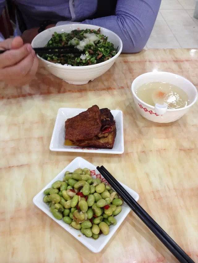看我老公那无辜的眼神,那五香豆腐很不错,那雪菜盖饭到现在老公一直都很回味。