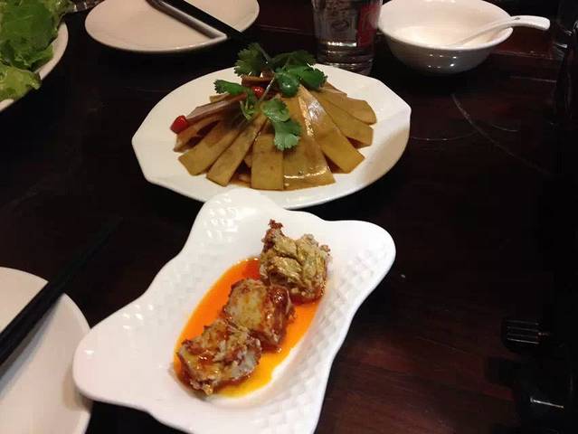 这是他们自己做的霉豆腐和脆萝卜皮,特别推荐这个萝卜皮,真的是又酸又辣又脆真的很好吃~~~~~~我一个人把这一碟都吃完了