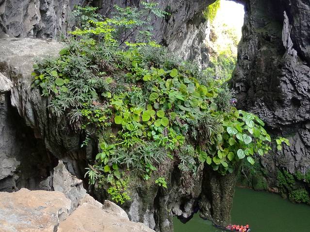 坐船穿过这个小洞就到啦!