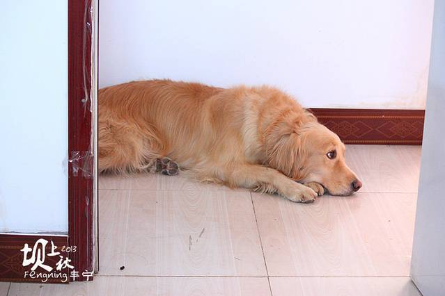 三元看出我们生气了,默默地趴在门口不敢进屋。