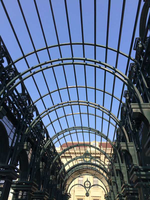 索菲亚教堂附近的铁艺连廊也很有观赏性。和索菲亚教堂很和谐。也使用了火焰形尖券。