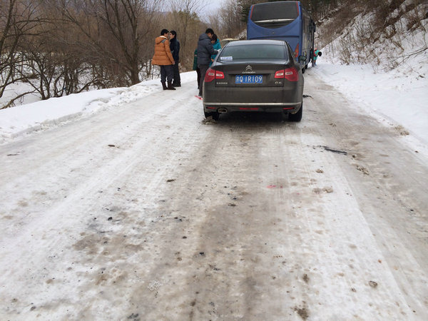 进雪谷的路面都结冰了。外省来的车,都自觉地加了防滑链。在冰天雪地开车,更要注意安全和规则。譬如雪谷雪乡的路都是双向单车道。哪怕堵也不要超车。天知道你以为是路的地方,其实是大沟,因为雪的掩盖而分不轻。我们二次堵车都是和不守规则的驾驶有关。进雪谷,因为心急超车和对向车撞了。出雪乡,也是有车超车掉沟里。好在我们也就等了个把小时,据说严重时,等6个小时的都有。