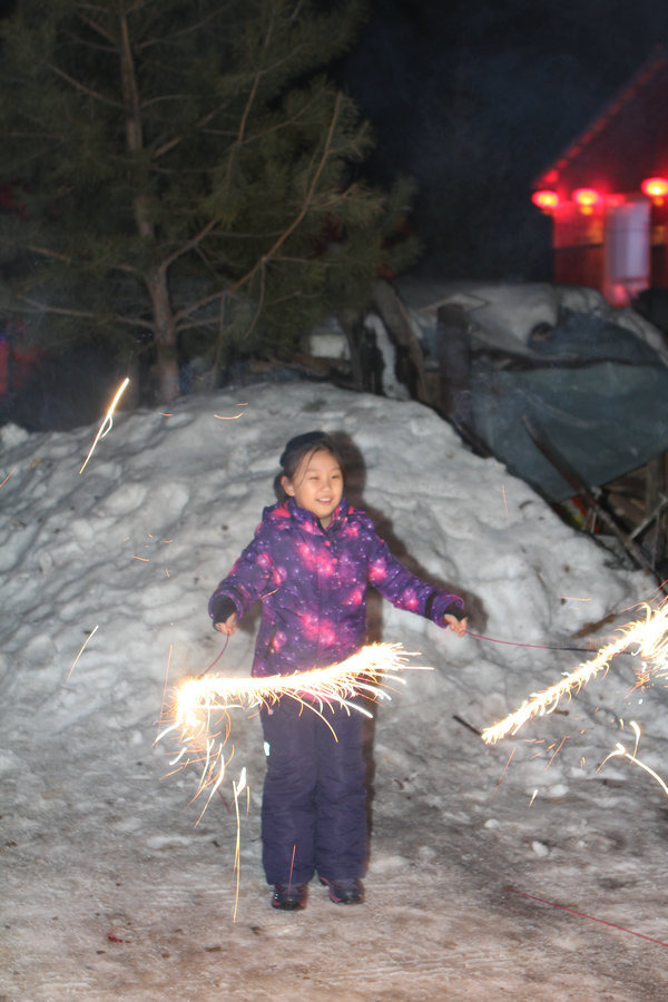 到雪谷已经快晚饭了,办理好入住等事宜。吃过晚饭,我们就闲逛起来。有篝火晚会,但是这次的篝火晚会不如上次在坝上的有意思,就一盆子木柴点火。坝上毕竟是干枝搭起来,而且还有歌舞表演。小孩子们还是觉得玩烟火更开心。