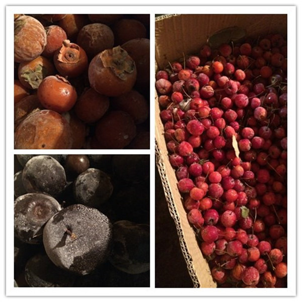 东北特产:冻梨、冻柿子、冻……