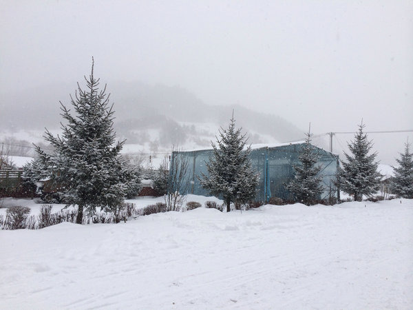 我们运气还是不错的,第二天一早起来。漫天飘雪。