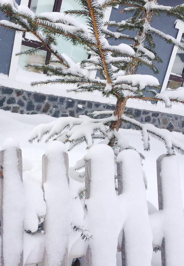 一觉醒来,门口的雪半人高了。