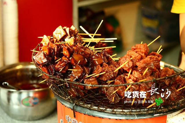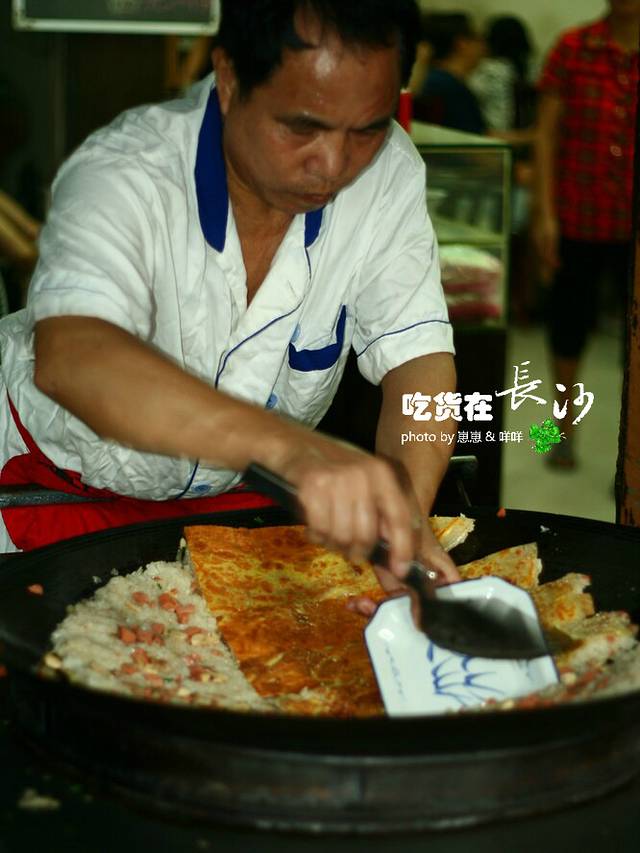火宫殿旁的一下小店,特色是长沙豆皮,一种煎蛋夹着炸饭团的东东。