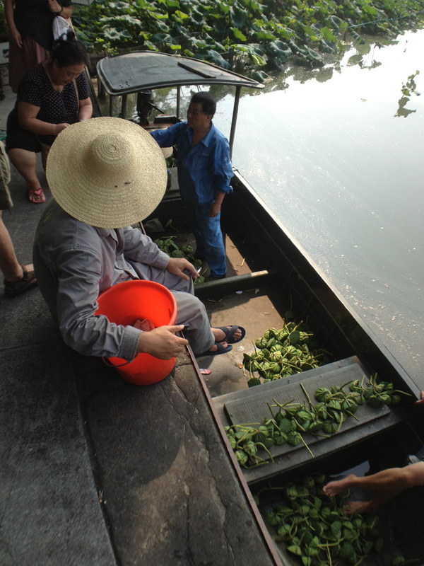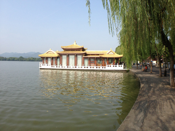 三潭印月。人民币风景。其中一潭去年被撞沉了,900多年的东西沉入湖底,重新打捞重新修。