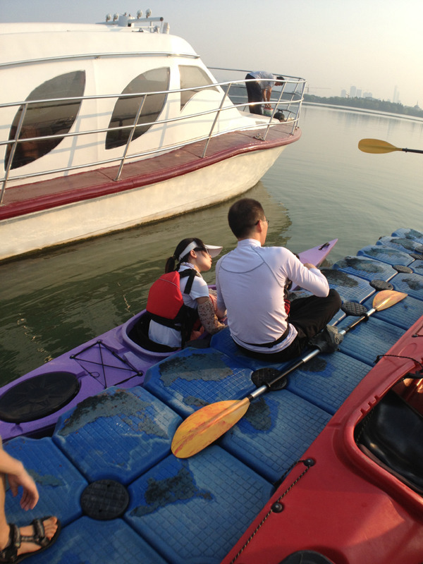 蠡湖边上划划 这个算不上旅游。就在家门口,尝试了新玩意。因为是夏天,为了避免中午的日头晒,一大早就往集中基地去了。