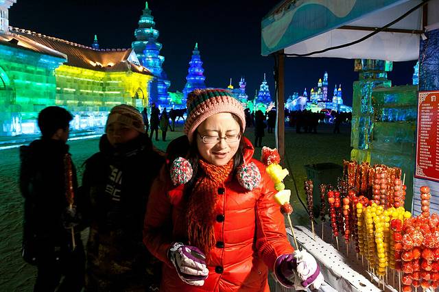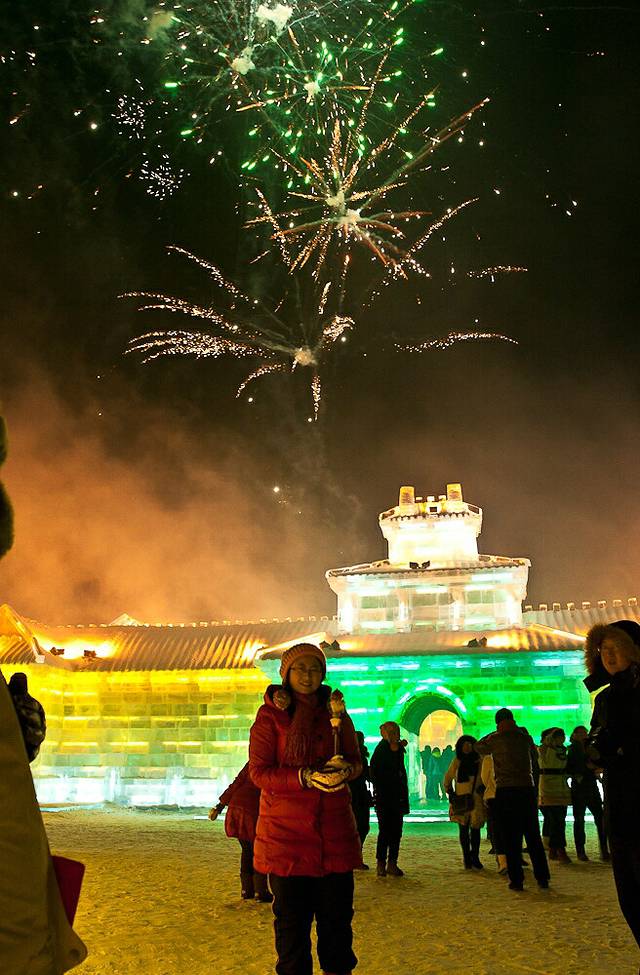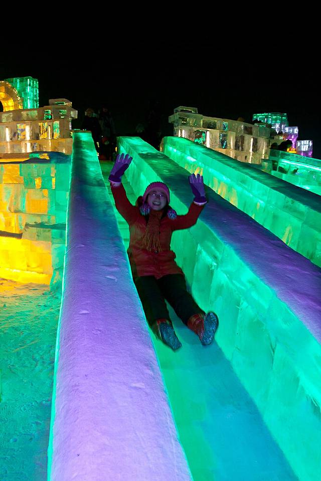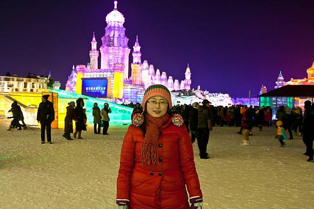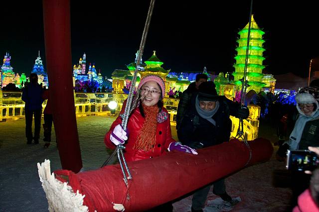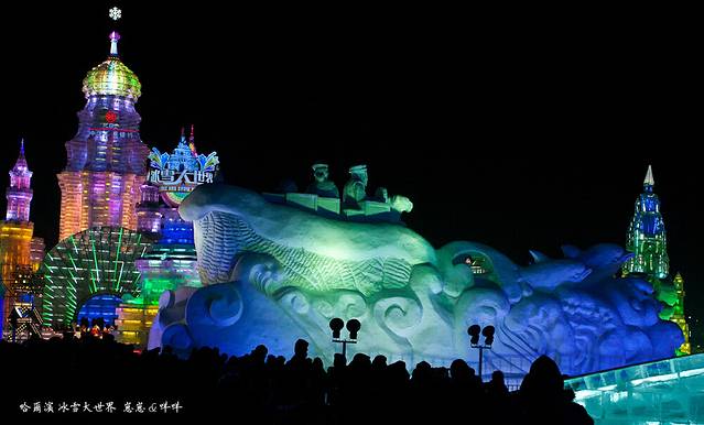 5、看冰雕:哈尔滨的冰雪大世界,下午5点多就会开灯,可以自己座公交去(非常难挤),也可以在青旅报名,来去包车330元/人,做好堵车准备,大世界每口非常堵非常堵!!大世界晚上不冷,也就,-20°。