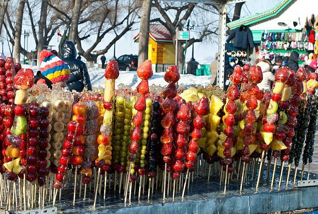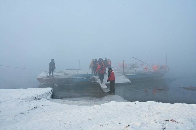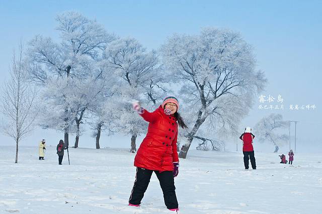 3、看雾凇:在火车上问吉林当地人雾凇岛,没一个人知道的,我勒个去,后来才知道要说“乌拉街”当地人才知道。乌拉街历史比吉林市还久远,那住的大多是满族人。雾凇不是每天都有,一年大概有个十几天有,去之前最好提前一天电话岛上的旅馆。据说要几个条件(零下24°,晴朗无风,空气质量好,雾霾可不行)才能形成雾凇,当然我们很狗屎运的碰到了^_^。8点到雾凇岛看雾凇,10点太阳出来雾凇就散了。