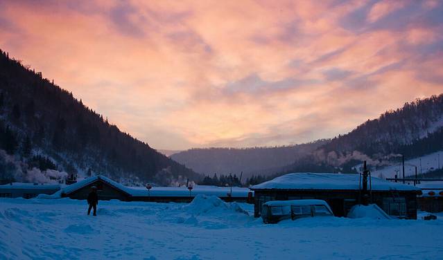 4、东升穿越:从哈尔滨青旅包车单程去东升150元/人。必须穿越,因为路上景色很美。最好是从东升穿越到雪乡,因为前平路(可以做马拉爬犁,80元/人),中间垂直山路,雪快到膝盖,相当的辛苦,但雪景也相当美,中午12点到羊草山顶有暖屋(20元/人),最后5公里下山,大路无难度。记住,别在山上乱扔垃圾!!