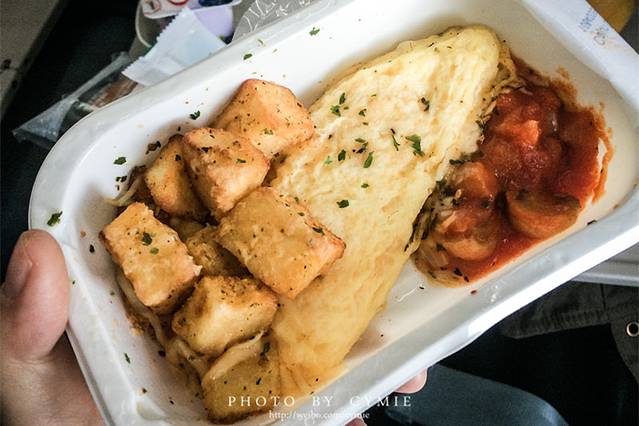 飞两个小时还发了饭,坐廉价航空多了,都快忘了飞机含餐是什么感觉了。