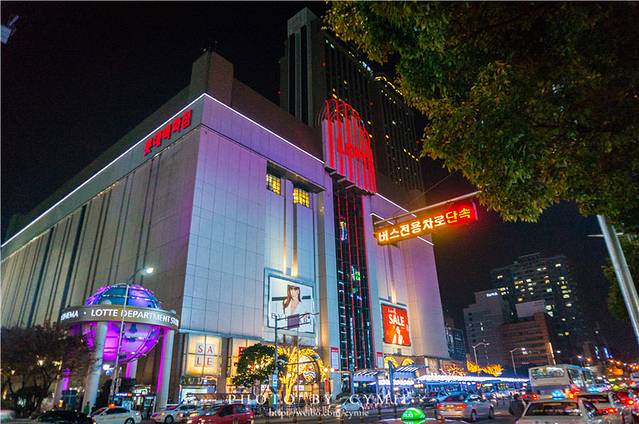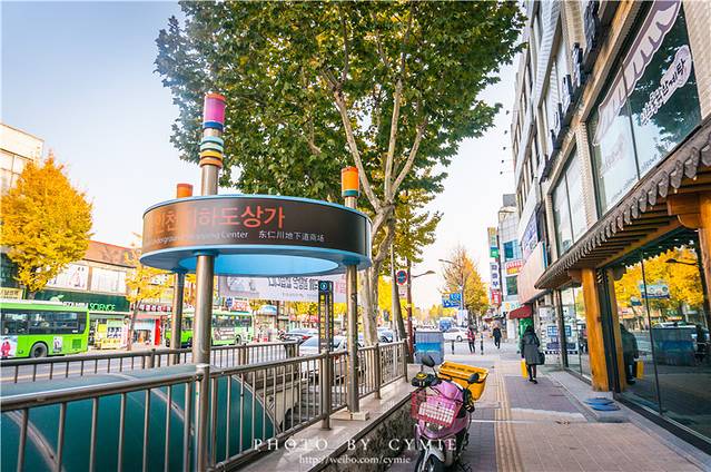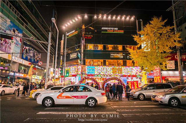 西面有一家很大的乐天百货和免税店,就在地铁口,订的宾馆在距离地铁站走路10分钟的地方,从宾馆到地铁站,刚好要穿过西面美食街,非常方便。