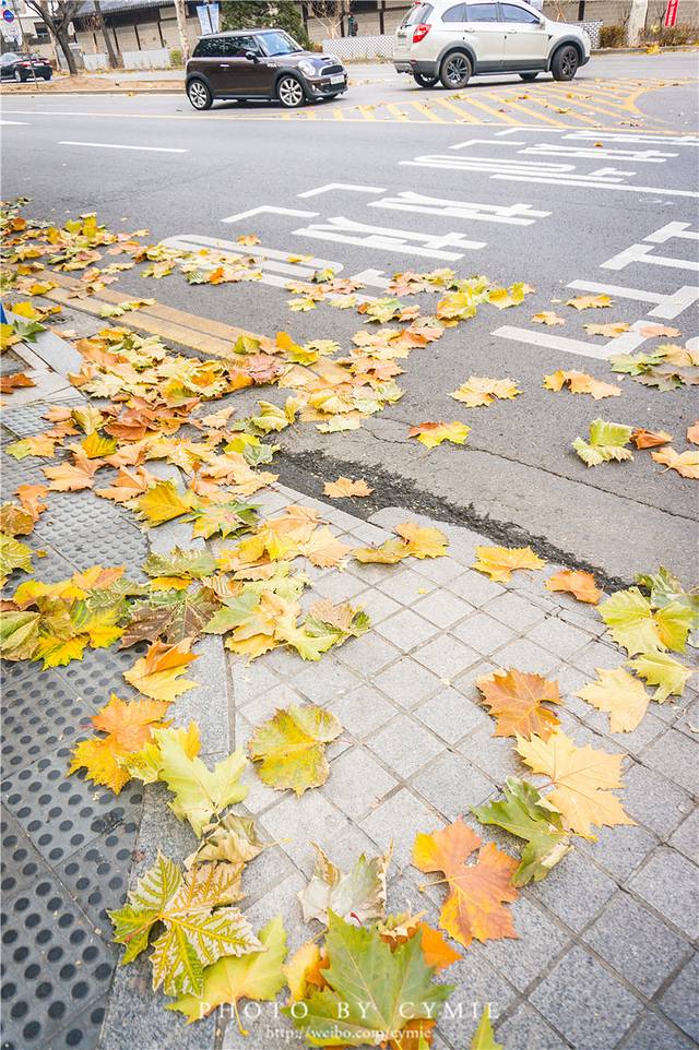 韩国不怎么扫落叶,落英缤纷,很是浪漫。