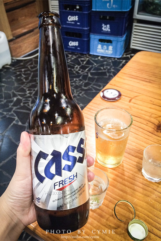 在韩国吃饭,坐定就会给你端上来一瓶冰水,还冒着凉气儿呢。