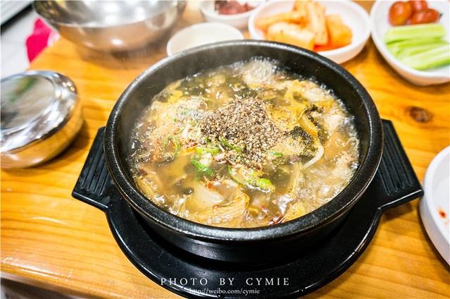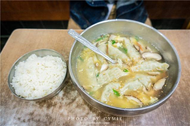 好在这家店菜单有中文,点了一个泡菜汤饭+一个带汤饺子。早上吃拌饭吃不下呀,就当点了一个粥和一碗馄饨。