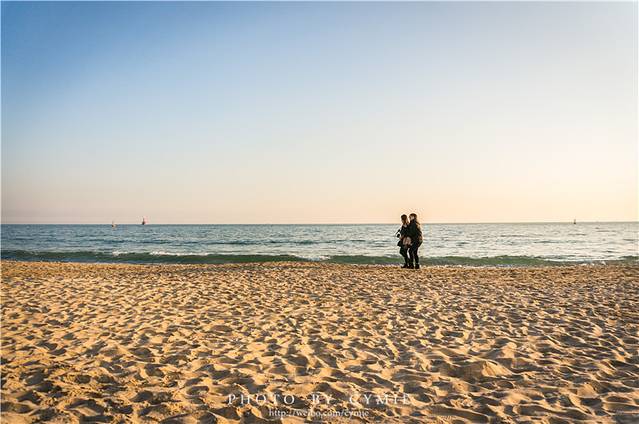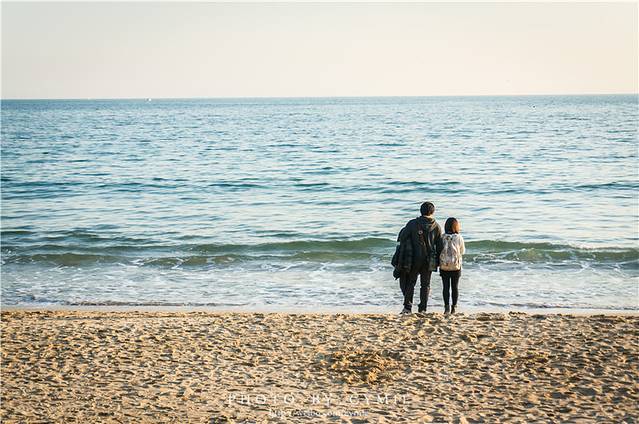 很奇妙,一对韩国小情侣的背影,让一片海有了韩剧味道。