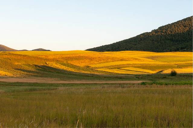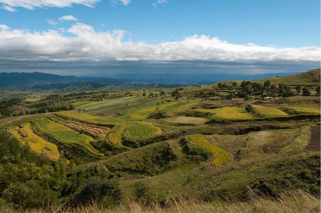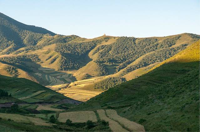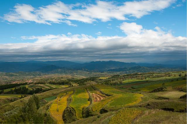 由于是初秋,绝大部分莜麦还没有收割,梯田还算漂亮