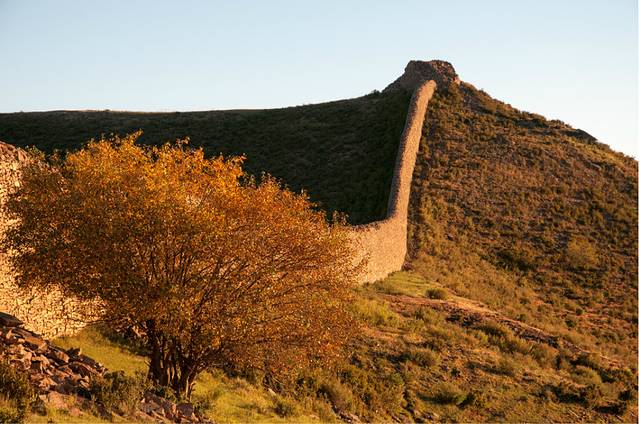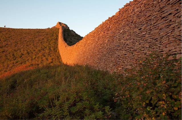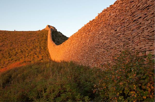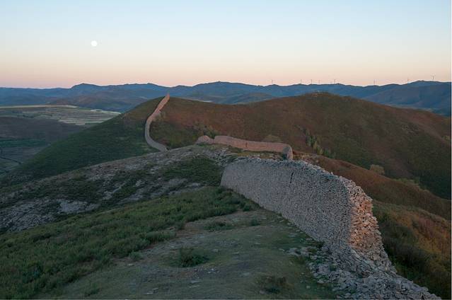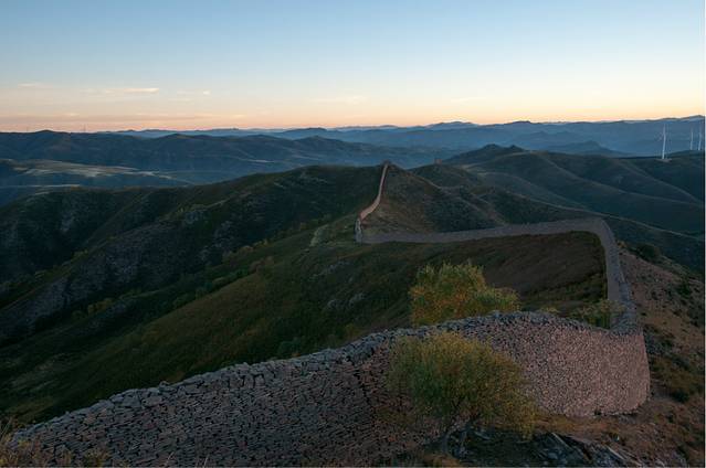 第一惊,惊叹。绵延起伏、高约四五米、宽约两米多的独石口长城,据说修建于明代,竟然是用一块块大小不一、形状各异的石头垒起的,看不到填充物,居然屹立几百年不倒。历史文献中,没有戚继光镇守于此的记载。但我相信,戚继光在荡平倭寇,奉命北上镇守蓟州,拱卫京师的时候,他一定策马来过这里,这种就地取材、因地制宜修建长城的创举,只有针对倭寇武器之长,而创造出狼筅兵、长枪兵乃至“蝴蝶阵”,打败倭寇的戚继光才可以想得到、做得到!几百年过后,抗日名将方振武将军在此英勇抗击日寇,支撑他的一定有“封侯非我愿,但愿海波平”的民族大义。站在长城上,残阳如血,一股英雄气,在驰骋、纵横!