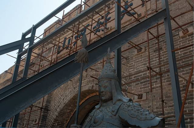 (脚手架挡住了城门正中的“大境门”三个字)