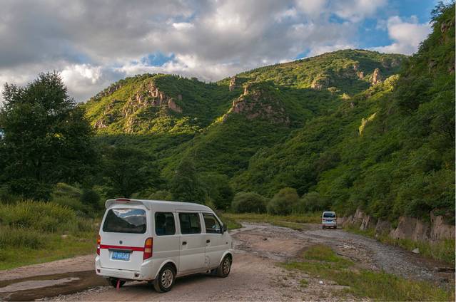 有道是:计划赶不上变化。从地图上看,走京津高速-六环-小汤山桥-立汤路-安四路,到四海镇,然后x002县道穿过山谷,就可以到延庆百里山水画廊,再到赤城县雕鹗镇-赤诚县-独石口镇。距离不太远,早晨出发,沿途顺便看看传说中秋色很美的百里山水画廊,黄昏以前可以赶到独石口。可是,到了六环不久就堵车了,原先计划全部泡汤。于是,改行第二套方案,从张家口怀来县下京藏高速,走s241到赤城县。这是最近、最快的路了。241省道很好跑,但是一路限速70公里,等我赶到独石口镇的时候,已经是下午四点半了,好在做足了功课,不费劲,就把车开到了距离长城最近的山梁上。再看看表,已经快五点了。好么,整整走了七个小时!真是纸上谈兵害死人啊,原先计划的线路就是不堵车,天黑前也根本赶不到这里!
