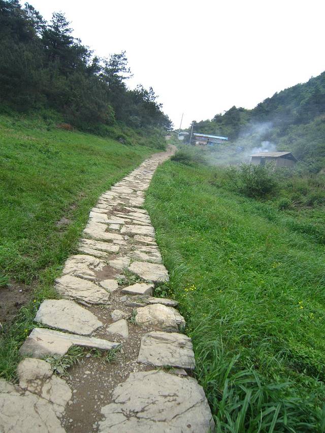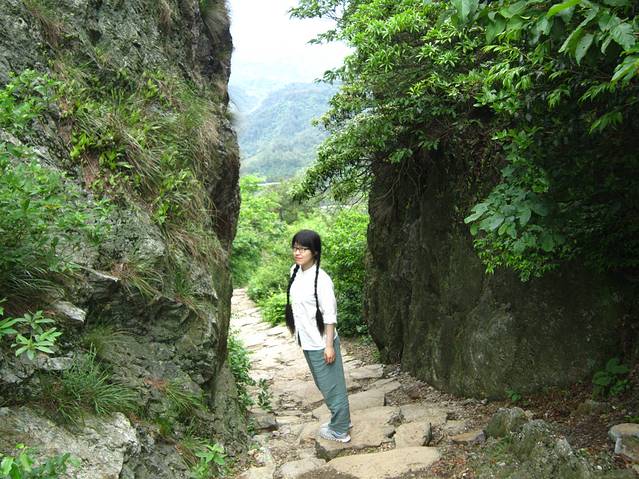 十一点正式开始徽杭古道徒步,在门口买了两根登山棒两块钱一根,走完可以回收的,山里的空气非常棒,不过刚开始一直是上坡路,因为不着急,所以基本上是走两步歇一步,边走边玩,聊聊天,发发呆,拍拍照,在山里发呆就是不一样,走到江南第一关,也许从小就在没有山的地方生活,难得看到那么多山,有一种豁然开朗的感觉,忘了所有的烦心事,甚至忘了自己是谁,只想好好的享受这一刻。一路上没有太阳,温度也不是很高,偶尔有小雨,下下停停的,个人认为是最好的天气了。因为有雨,山里有一种云雾缭绕的感觉。很赞。路上还遇到四五个很小的小孩子,跟着父母一起徒步,小朋友很厉害呢。