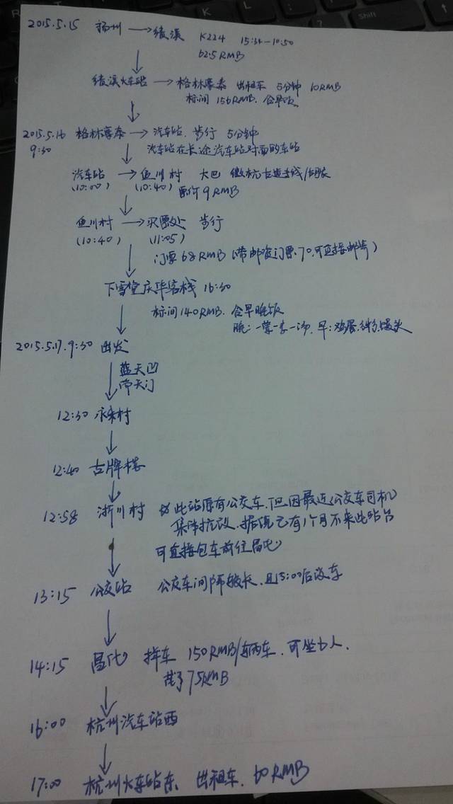 整个行程安排时间,花费