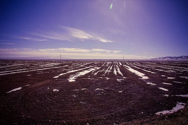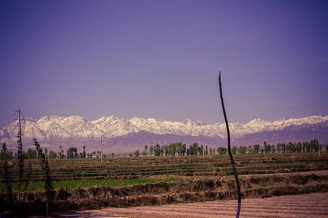 祁连山下的土地看起来还挺肥沃,不像大西北的地貌