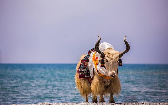 纳木错的白牦牛,,骑在上面拍照要20块钱,我拿长焦在远处拍了一张