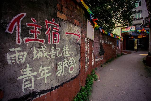 雅安曾是西康省省会,梁平到雅安全程高速,下午四点多到达后入住雨城记忆客栈。这个客栈专门接待川藏线上的骑行背包客,我们开一辆越野车,倒显得有点格格不入。客栈送了一份“英雄帖”,上面记录了沿线的酒店旅馆,事后发现此贴很有用,上面的旅馆都还比较靠谱,我们自己找的酒店倒出现了一些诸如没有热水、停电等小问题。
