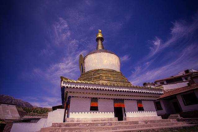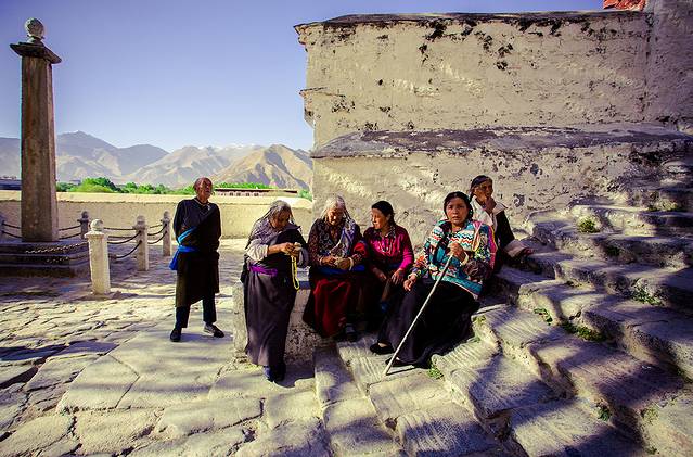 我在庙前的台阶休息,这位藏族大妈围着这个庙转了很多圈