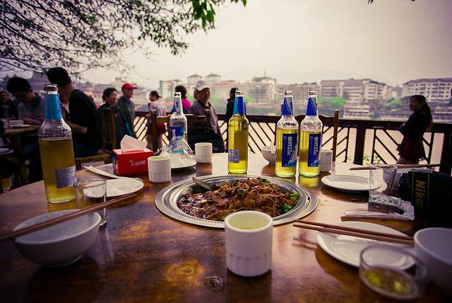 雅安有三雅,雅鱼,雅女,雅雨,看到了两样,雅鱼太贵了就没吃,我们点了个烤鱼,加上几瓶啤酒几碗米饭吃了,晚上去拍了雅安的一座桥。