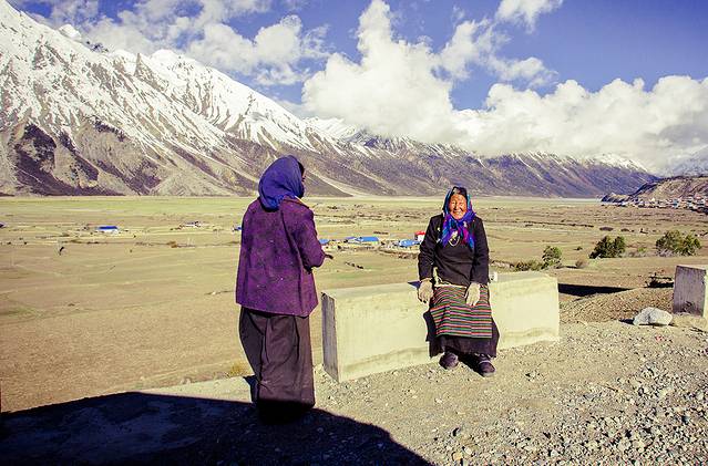 从来古冰川回来的路上,藏族妇女有明显的高原红