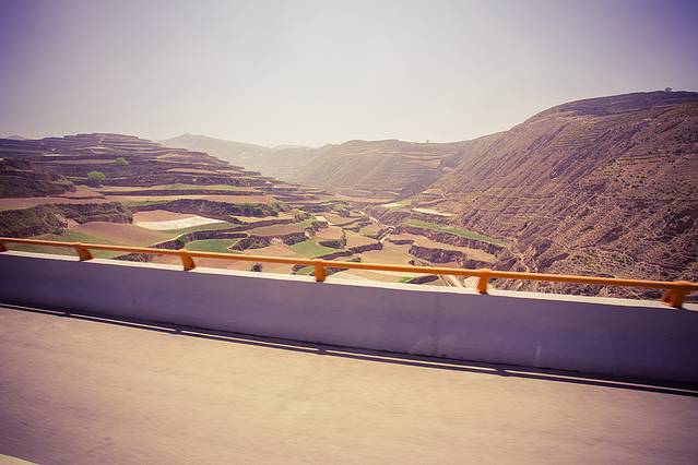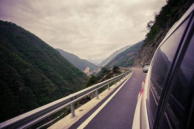 路边的围栏被开了很多口子,车子可以随意下来休息拍照