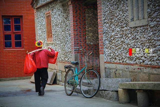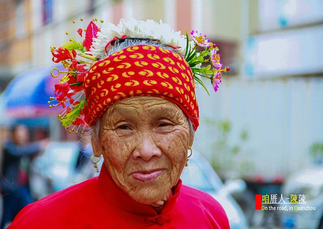蟳埔村位于泉州市丰泽区东海社区,据说这里居住的是古时阿拉伯人的后裔。这里的女人们头上戴着鲜花做的漂亮的簪花围,戴着丁香耳坠,穿着大裾衫、宽脚裤,形成了一道独特的风情,她们和惠安女、湄州女一起并称福建三大渔女,这里还有别具特色的民居“蚵壳厝”。虽然距离现代的物质生活近在咫尺,她们仍然虔诚地传接着祖辈们世代沿袭的生活模式。