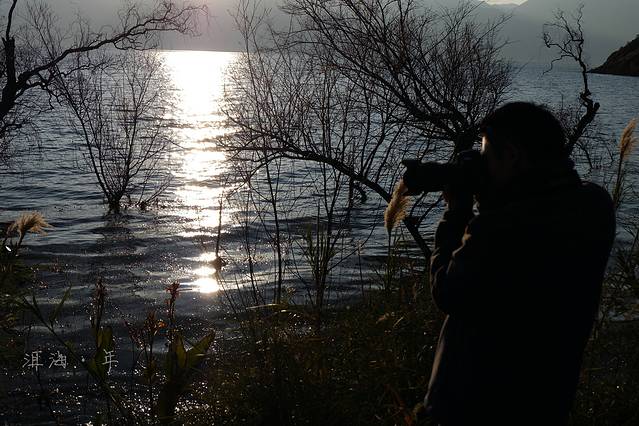 最美的光色稍纵即逝。即便相机没捕捉到,至少,你的心已经瞬间被融化了。应该没有一个地方能像挖色这样让你这么深入地走进这片“海”。常常的路,就洱海的舌头一样,让你忍不住想要跟那个女子一样贪婪地去舔吸它。2月的大理傍晚,风很大,披一件外套仍感觉寒风不停往里灌。我想,那是她表达对洱海爱意的一种方式吧。