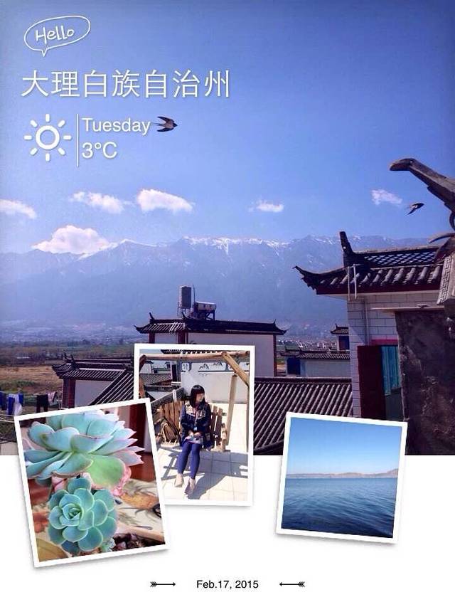 说说大理的住宿:其实在洱海边,当然有值得住一晚超文艺超豪华的海景房的,但只限于淡季。在除夕这样的大旺季,即便提前一个月订,也没有下1000的房间。不是土豪,果断放弃吧!最终,在艺龙上选择了小文艺,又方便的位于大理古城的夏朵客栈。事实证明,选择住古城确实是个错误。首先是,开到大理古城后人多车多,加上老黑又宽,不到100米的路都要走上10分钟。好不容易,导航说了:“目的地位于道路左侧,本次导航结束。”可下车找了几圈,也没有发现那个叫夏朵的客栈。无奈之下,只好重新换地方。想起第一次来大理的时候住的才村,虽然过去4年,才村已经比昔日繁华很多倍,但已经也没有古城这么火爆吧。迅速在艺龙上搜,还有漏房,电话打过去,老板确定有房间,赶紧开车过去。小二是福建人,来大理已经有两年了。他说春节一般不回家。二楼阔大的客厅里,是他养的肥肥的多肉,我一下子就爱上了这里。客人不多的时候,他喜欢在这里开着电视,写着书法。妈妈说,夏天的时候,可以组织一帮亲朋好友来度假。大年二十九那天,他给我们150元一间的友情价,大年三十那晚,就翻倍了。不过,依然算是性价比相当高。