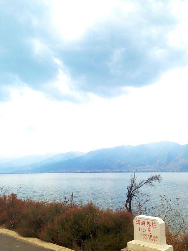 从才村的客栈出来,在下鸡邑村上到环海西路,一路上有路牌,很容易找到。现在,我们要开始去环海咯!洱海的环海应该也是分大环海和小环海的吧,就跟拉萨的大转和小转一样。大环海全程120公里,分为海西和海东。海西可以从才村上道,经桃源、龙龛、海舌到喜洲;海东从双廊到挖色,再经环海东路回到下关。我们要走的路是大环海120公里。