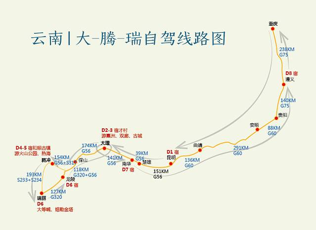 重庆——大理——腾冲——瑞丽——大理——重庆自驾线路图