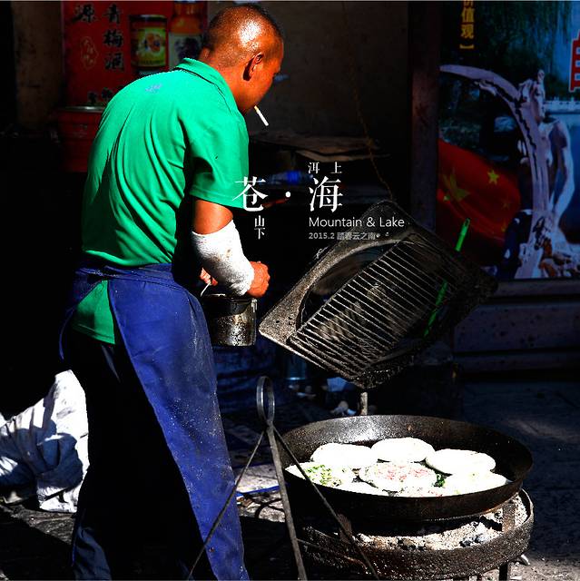 喜洲粑粑,堪称中国版PIZZA。上下用炭火同时加热。