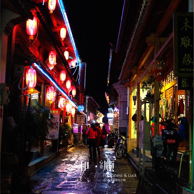 和顺镇的中心区域其实不大,走路也就几十分钟都转完。和顺的夜,基本还属于打造的初期。酒吧都不成气候,而且都很嘈杂,清吧很少。夜色中的和顺,美色远不及丽江四方街、大理洋人街等。你要说特色?特色就是还没有特色吧,或许它还有不像丽江的可能性。