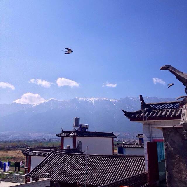 在才村的客栈,面朝洱海,背靠苍山。有大大的露天平台,可以远望2月的苍山雪。