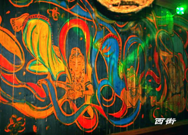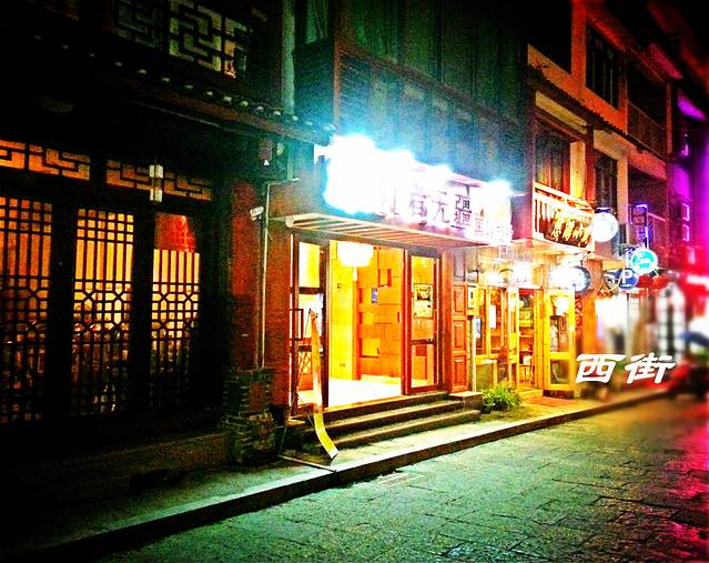 参观大约耗时两个小时。一路到达预定的阳朔县西街的行者无疆公馆。(我的真切感受是:阳朔县的交通状况比较差!尤其到了晚上,公车、的士、摩托、自行车,把本来狭窄的街道塞得水泄不通!阳朔算是国内开发最早的一批旅游景点了,但是交通状况依然没有什么改善!这在第二天的十里画廊行程中,更加凸显!
