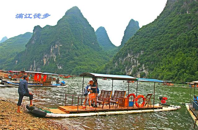 PS:现在乘竹筏有一个铁制的牌,还有竹筏主人写的字条。竹筏只会将你摆渡到浪石附近全家洲这一边。然后收走铁制的牌。你要保留字条,到了冷水渡口时,凭字条会免费将你摆渡到对岸,徒步到老村头附近,坐摆渡车去兴坪镇乘坐回阳朔县的大巴,从而完成整个行程。